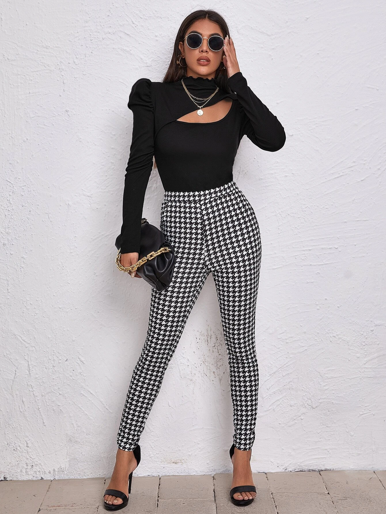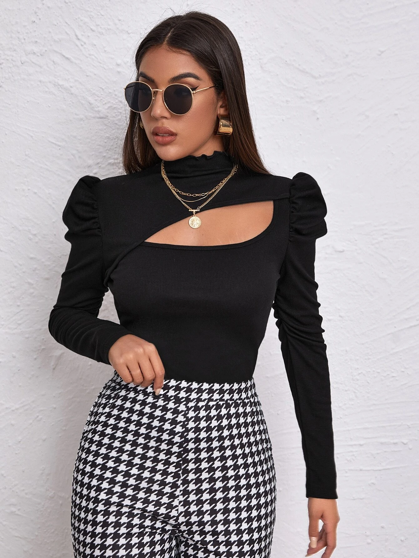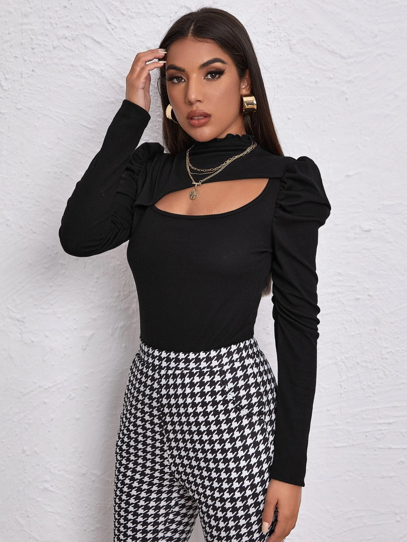 SHEIN Asymmetrical Neck Leg-of-mutton Sleeve Slim Tee